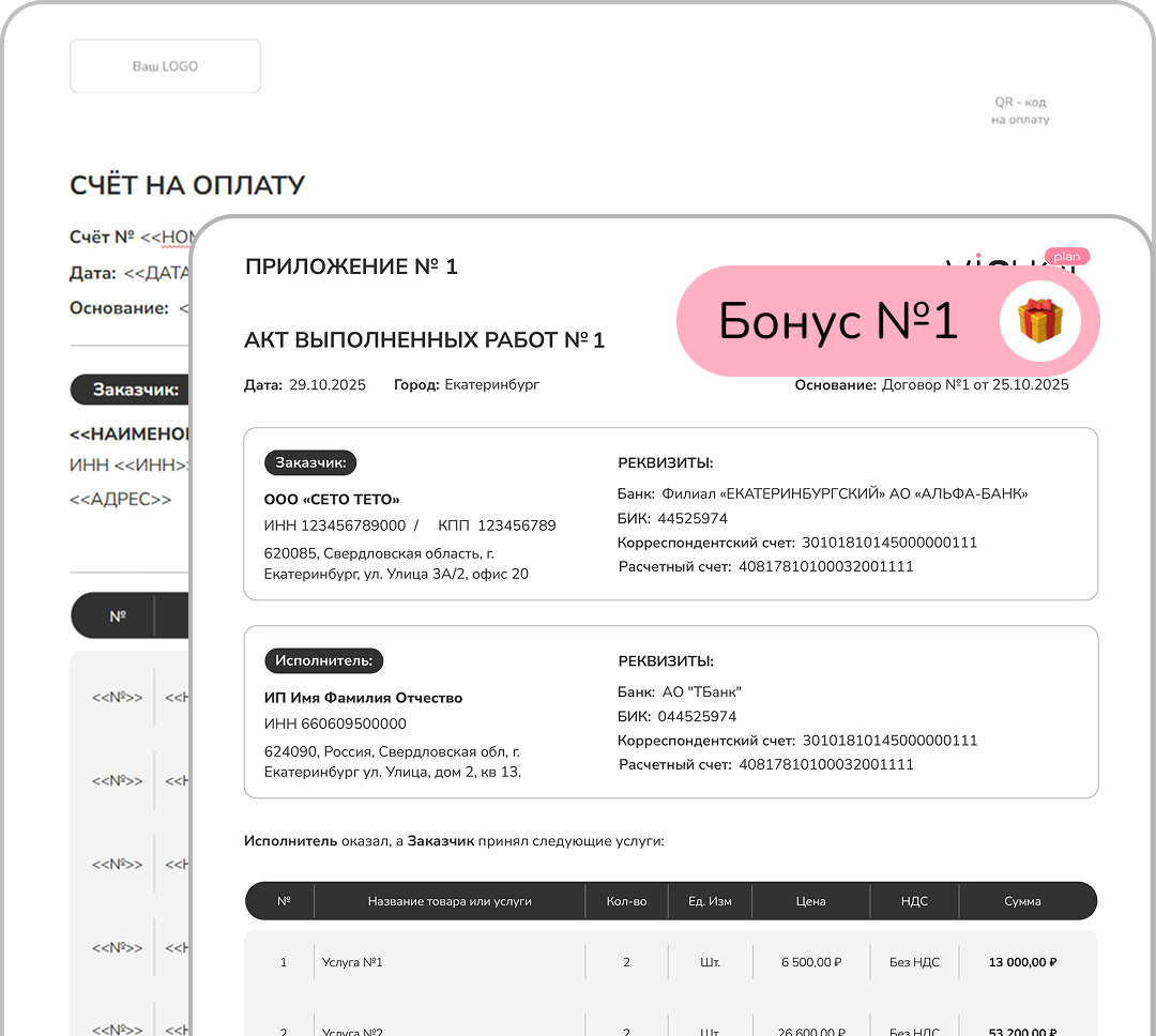 Готовые шаблоны дизайнерского счёта на оплату и акта (АВР)